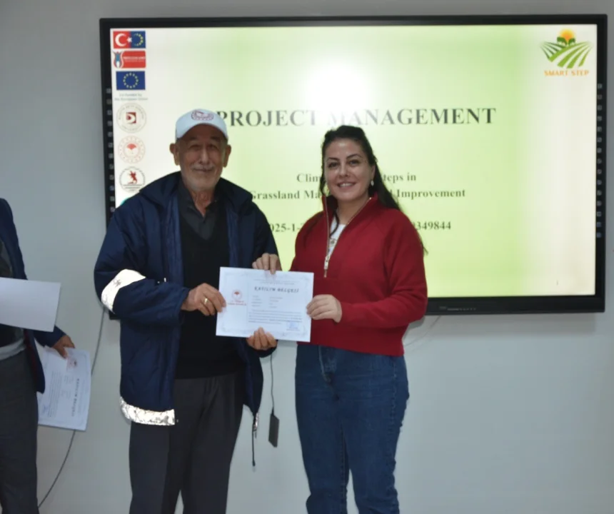Eğitimin son gününde ayrıca, “İklim Dostu Mera Yönetimi ve Islahına Yönelik Adımlar” (Proje No: 2025-1-TR01-KA220-VET-000349844) projesi tanıtıldı. Çiftçilere iklim dostu mera yönetimi, sürdürülebilir üretim teknikleri ve çevresel etkilerin azaltılmasına yönelik uygulamalar hakkında bilgilendirme yapıldı.