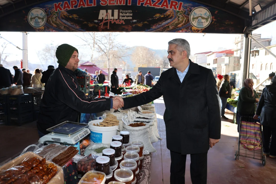 Pozantı Belediye Başkanı Ali Avan, Cuma günlerinin bereketiyle kurulan Kapalı Semt Pazarı’nı ziyaret ederek pazar esnafı ve vatandaşlarla bir araya geldi.