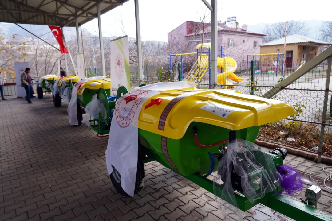 Adana’nın Pozantı ilçesinde tarımsal verimliliği artırmak, üreticilerin iş gücü yükünü azaltmak ve kırsal kalkınmayı güçlendirmek amacıyla 20 aileye yüzde 70 hibe destekli pülverizatör (ilaçlama makinesi), 4 genç girişimciye ise tarımsal faaliyetlerini güçlendirecek makine ve ekipmanlar teslim edildi.