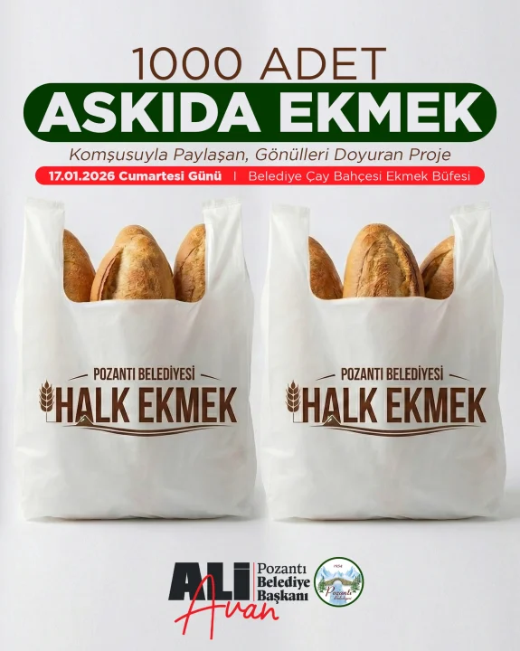 Pozantı’da hayırsever desteğiyle yürütülen sosyal dayanışma çalışması kapsamında, 18 Ocak 2026 Pazar günü 1000 adet ekmek ihtiyaç sahipleri için askıya çıkarılacak.